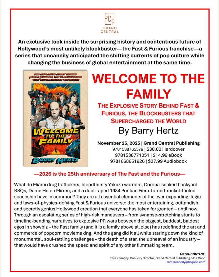 Anyway, near the end of our conversation, we discussed the still-unknown fate of Fast & Furious 11. So, of course, three days later, Universal announced a March 17, 2028, release date for Fast Forever. As such, Mr. Hertz was nice enough to jump back on for a quick Friday afternoon mini-discourse, after exiting a (work-mandated) matinee showing of Melania, which I’ve cut-and-pasted into the end of the first episode as gracefully as possible.
